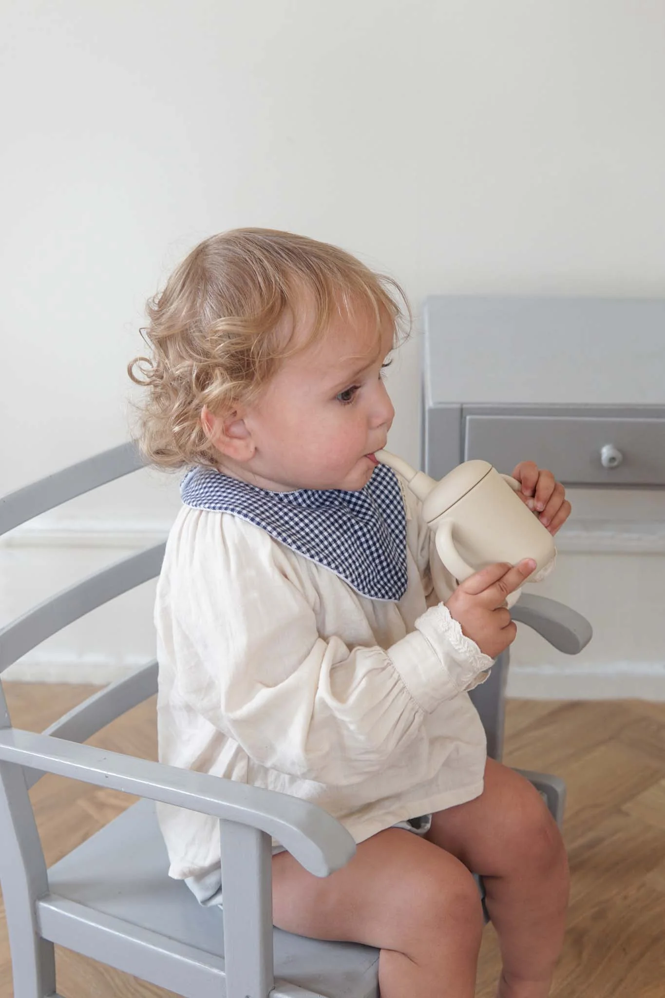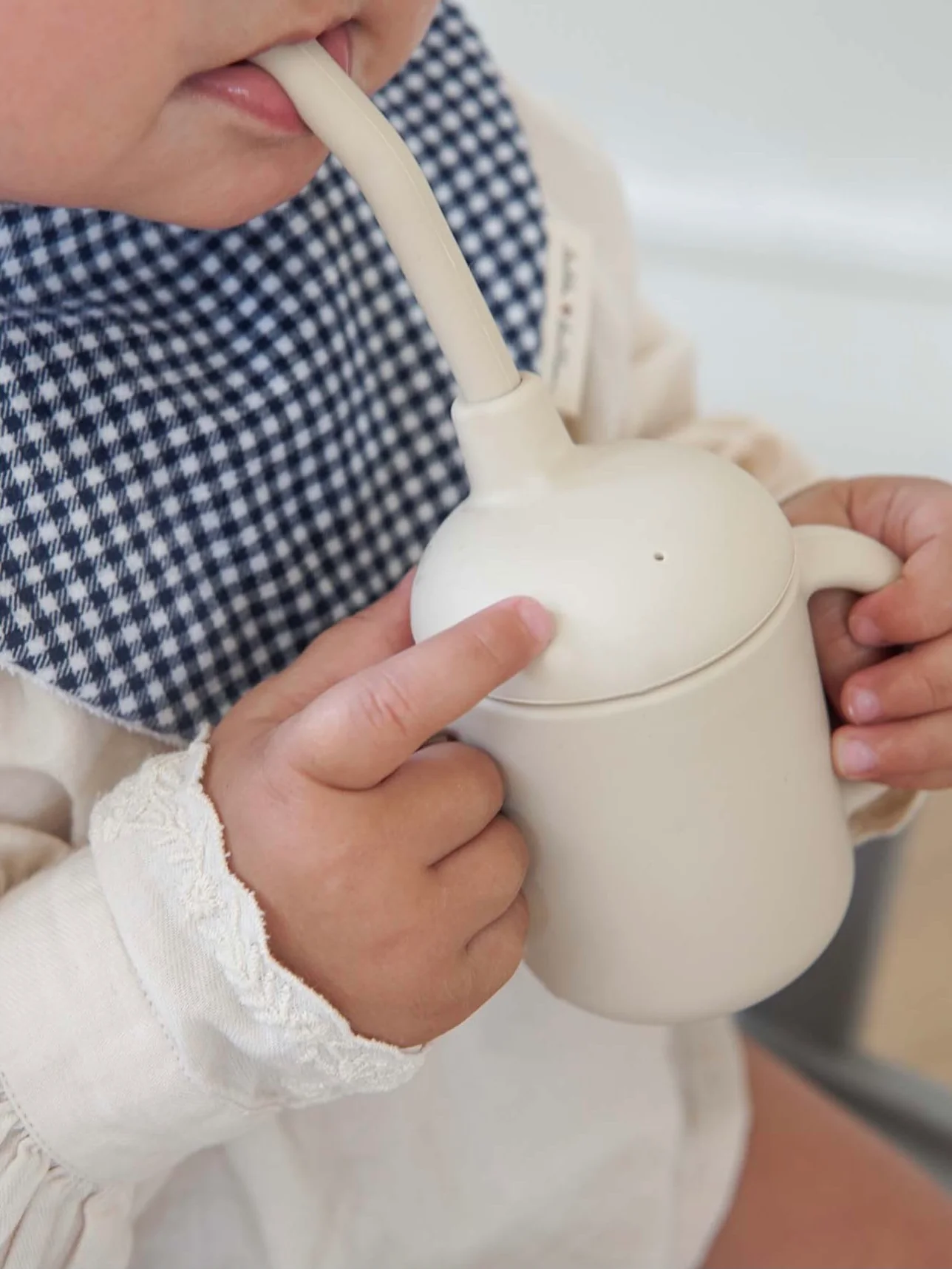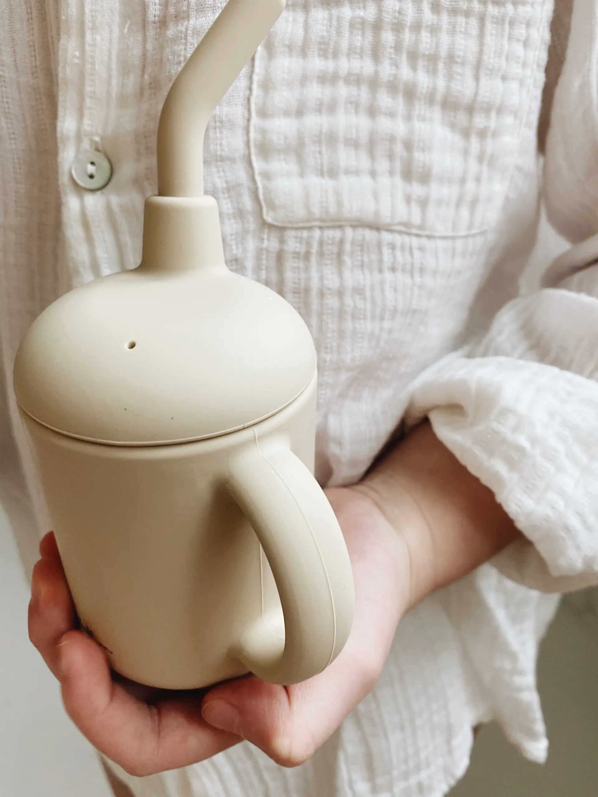 De beker is ontworpen om baby’s te trainen om hun eigen gevoel van zelfstandig drinken te ontwikkelen. De twee handvatten zijn gemakkelijk vast te houden door kleine handjes en zijn perfect voor de kleintjes om te oefenen met het zelf vasthouden van de beker. Het rietje helpt de baby te begrijpen hoe het moet drinken en de textuur van de zachte siliconen is ook perfect voor het tandvlees van je kleintjes.