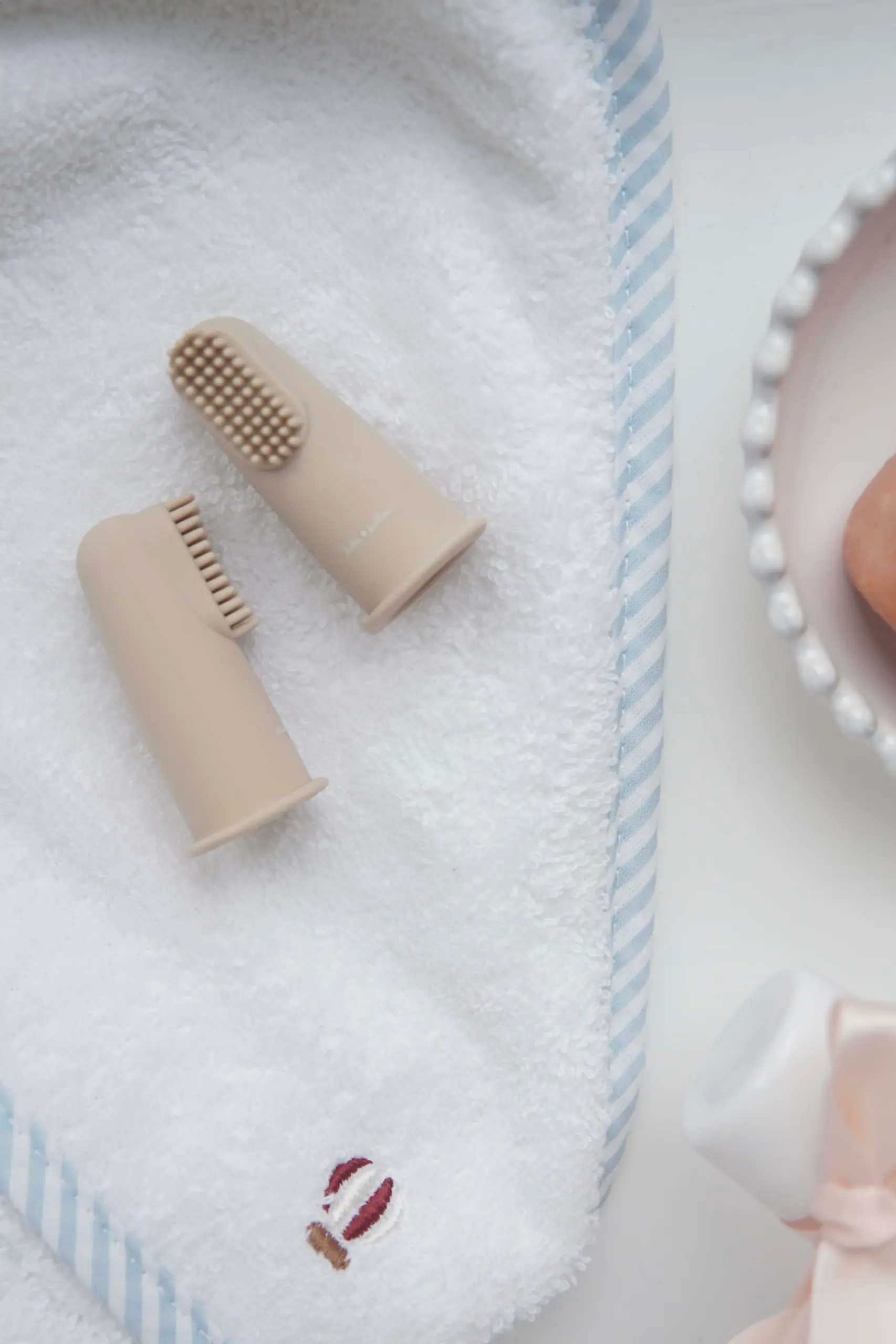 Onze siliconen vingertandenborstel is de perfecte manier om uw kleintje te helpen goede gewoonten voor mondhygiëne te introduceren. Het zachte, flexibele siliconen ontwerp past comfortabel om je vinger en is gemakkelijk te manoeuvreren, zodat je alle moeilijk bereikbare plekken kunt poetsen. De gepatenteerde borstelharen zijn ontworpen om zacht te zijn voor het delicate tandvlees en de tanden van de baby, terwijl ze tandplak en bacteriën effectief verwijderen.