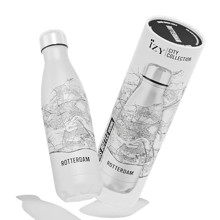 Ontdek nu IZY Bottles met plattegronden van je favoriete steden! Met de IZY x Rotterdam kun je genieten van je favoriete drankje zoals je van ons gewend bent, terwijl je je lievelingsstad altijd bij je draagt. Bekijk deze unieke fles en zorg ervoor dat je nooit meer verdwaalt in jouw favoriete stad! Wordt geleverd in een luxe doos.