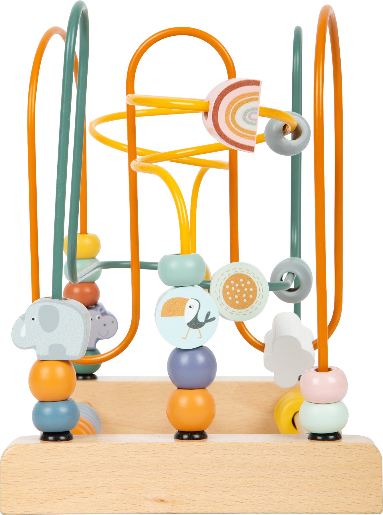 Wanneer wilde dieren de allerkleinsten “helpen”, is het bevorderen van de motoriek kinderspel! Als de houten kralen en schattige safaridieren van deze klassieke motorieklus in modern safari-design vakkundig over de drie ineengevlochten metalen lussen worden geleid, belooft dit niet alleen training van de fijne motoriek en oog-handcoördinatie, maar ook langdurige activiteit. PLUS: Ringen om te duwen en te tellen op twee houten stokjes vormen een perfecte aanvulling op het leerplezier! Plezier gegarandeerd! Een moderne motoriektrainer die de motorische ontwikkeling van kinderen ondersteunt en ook nog eens mooi staat in de kinderkamer.