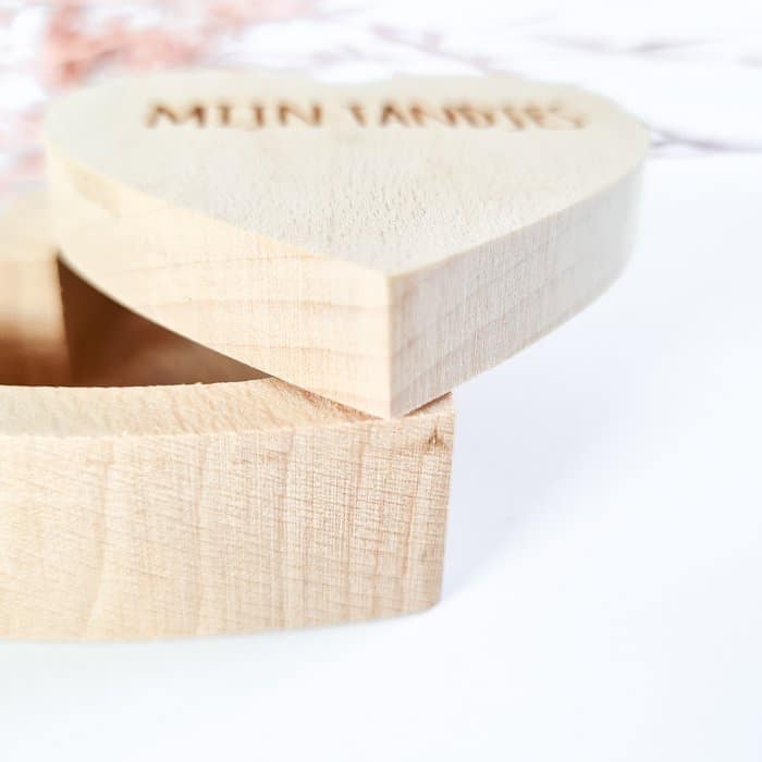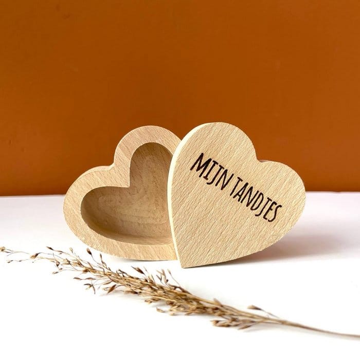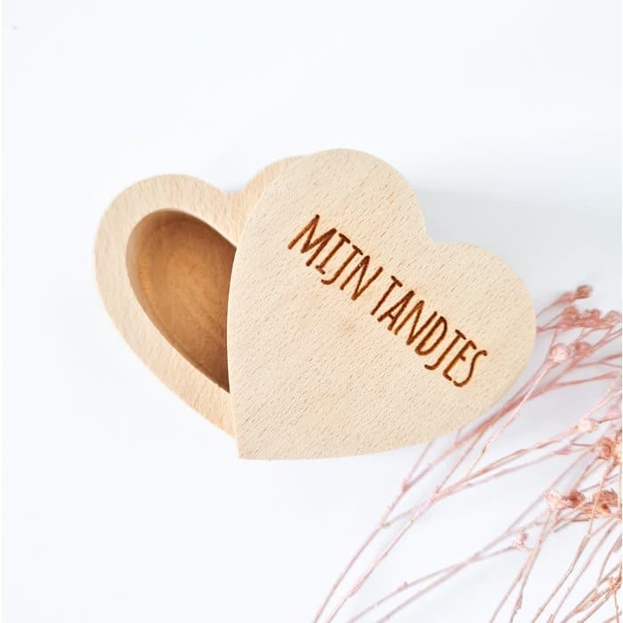 Specificaties: 1 hartendoosje met gegraveerde opdruk: ‘mijn tandjes’.